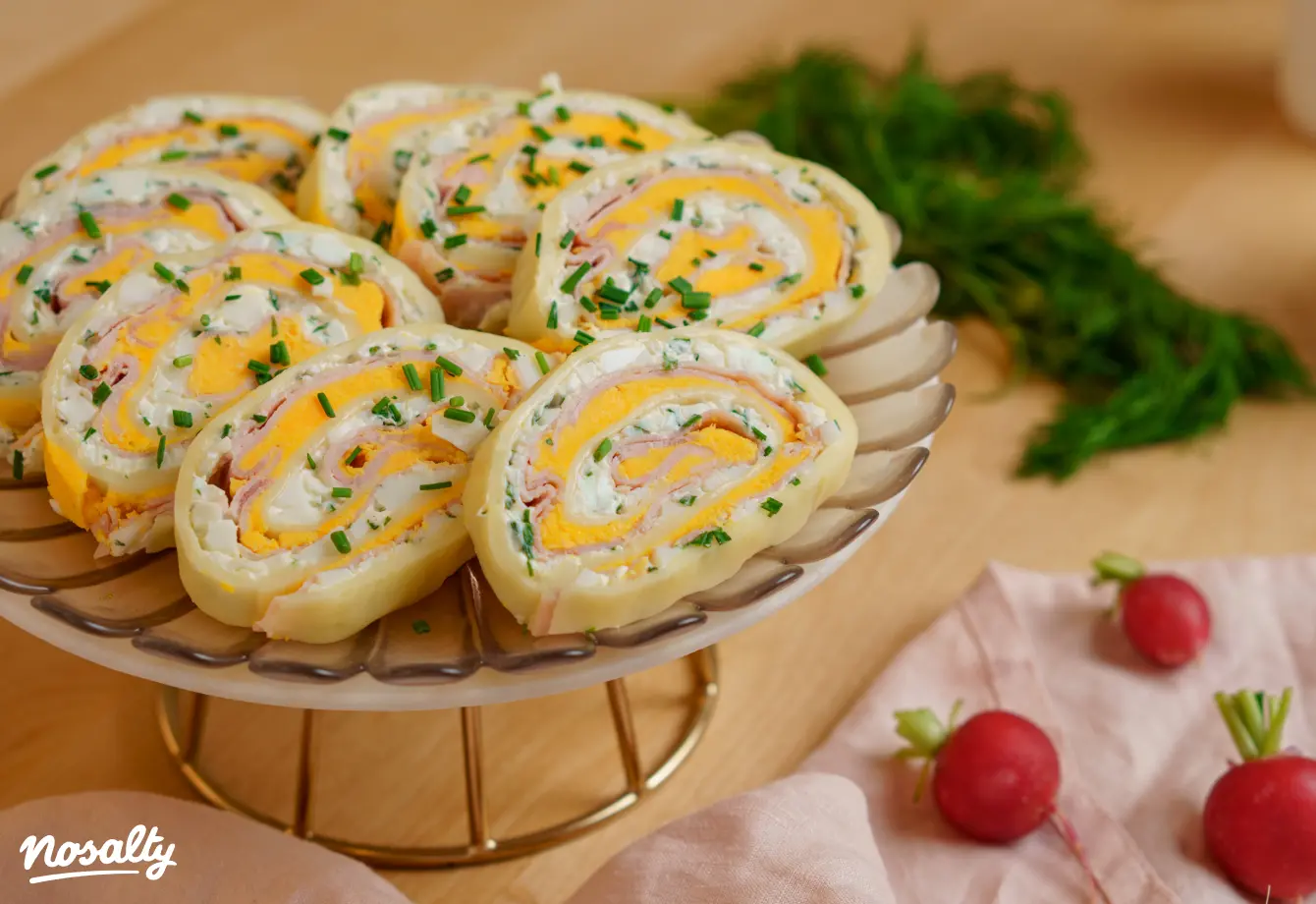 A vendégségek koronázatlan királynője a hidegtál. Mindenféle húskészítményt, sajtokat és kencéket szervírozhatunk egy tálcán. A sajttekercs egy keveréke ezeknek, hiszen sajt, sonka, tojás és kence is van benne. || Nosalty